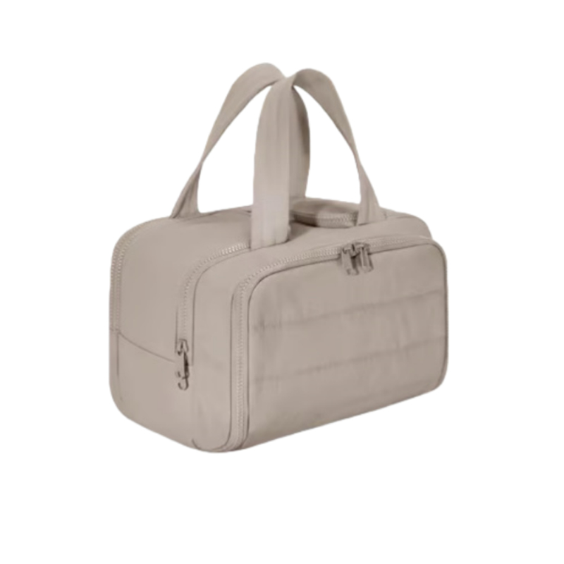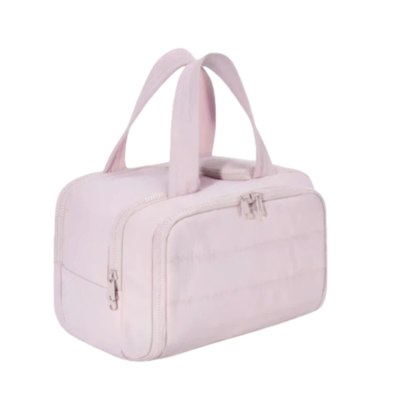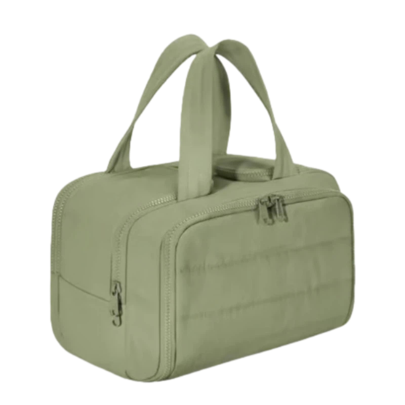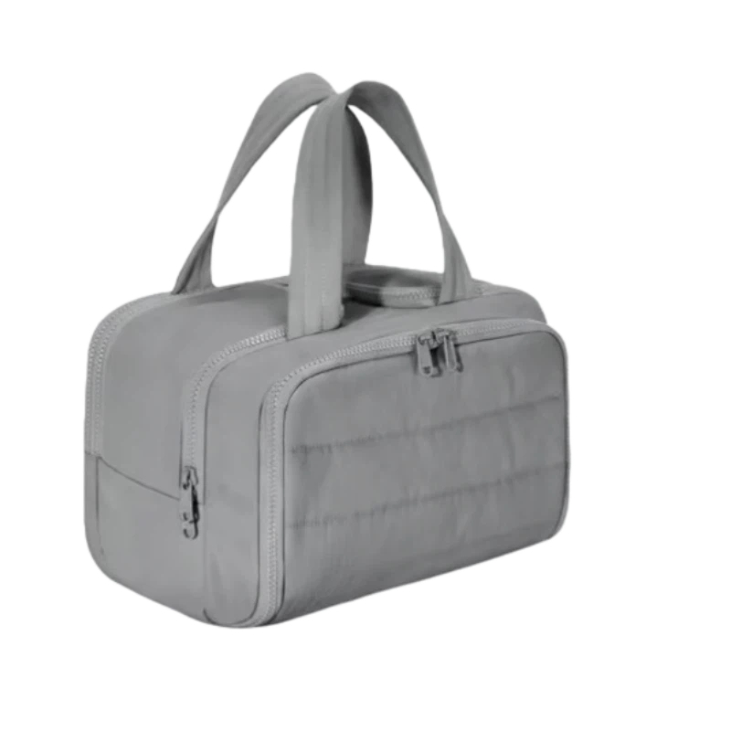 his compact travel cosmetic bag is perfect for people on the go. It's small, but roomy enough for your essentials like makeup, toiletries, and more. The zippered compartments keep everything organized and secure, so you don't have to worry about spills. The lightweight, portable design makes it easy to throw in your suitcase or carry-on without taking up too much space. It's also great for keeping your bag neat and tidy. Whether you're headed to the gym, a weekend getaway, or just need something simple for your daily routine, this bag has you covered. The sturdy handle makes it easy to grab and go. Plus, the sleek design fits in any bag and adds a touch of style to your travel gear.