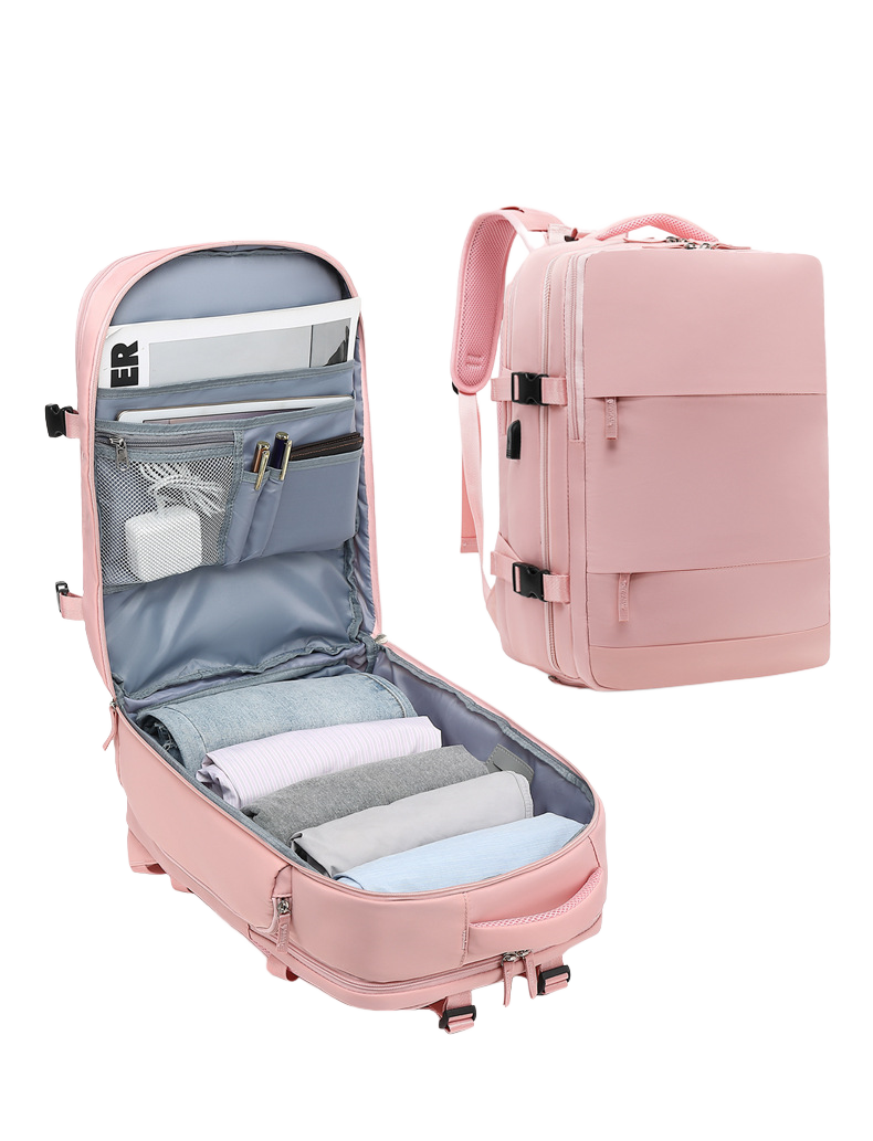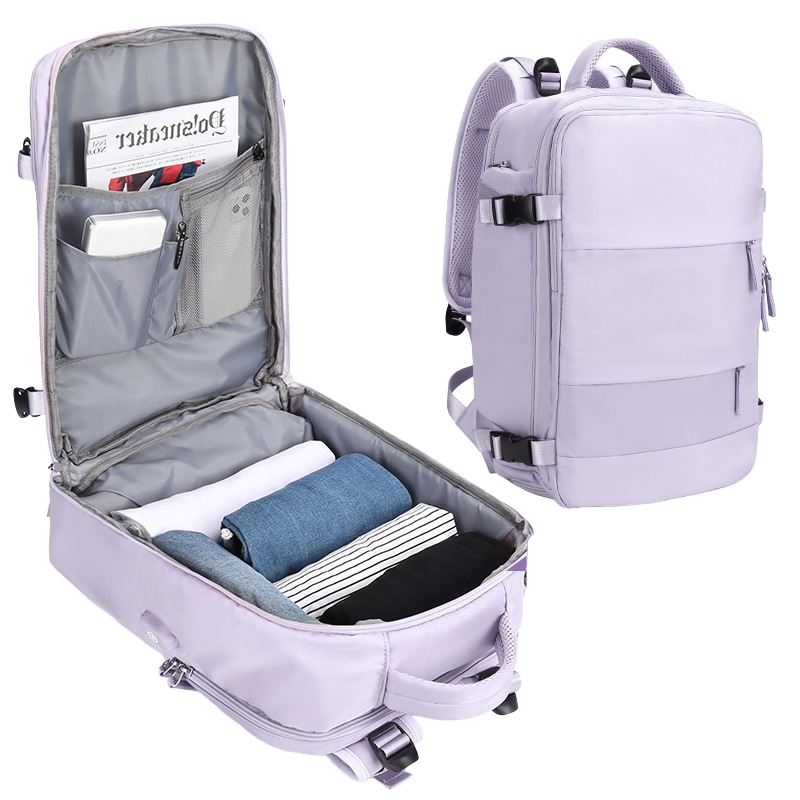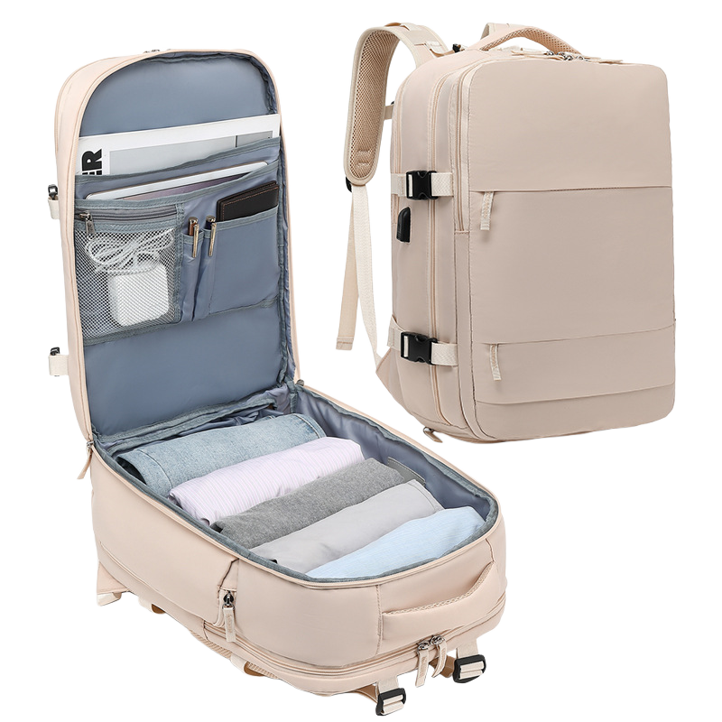 This travel backpack is built for people who are always on the move. It opens wide to pack clothes without any hassle. The roomy inside gives space for daily gear and weekend stuff. A separate laptop slot keeps your tech safe and easy to grab. There is also a shoe pocket that keeps dirty sneakers away from clean clothes. Multiple compartments help you stay organized on long trips or quick flights. The front zipper pocket holds small items you reach for all the time. Side pockets work great for bottles or snacks on the go. The design is sleek yet practical so you look sharp while traveling. It fits under most airline seats which makes check-in a breeze. Strong straps and soft padding keep your shoulders comfy all day.