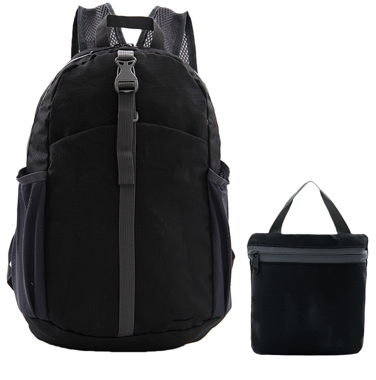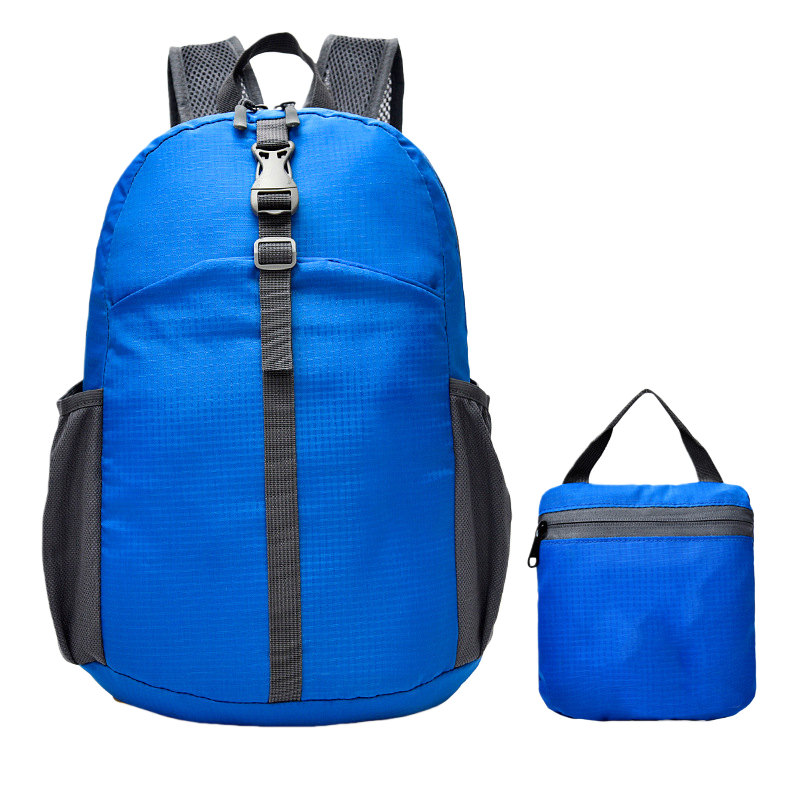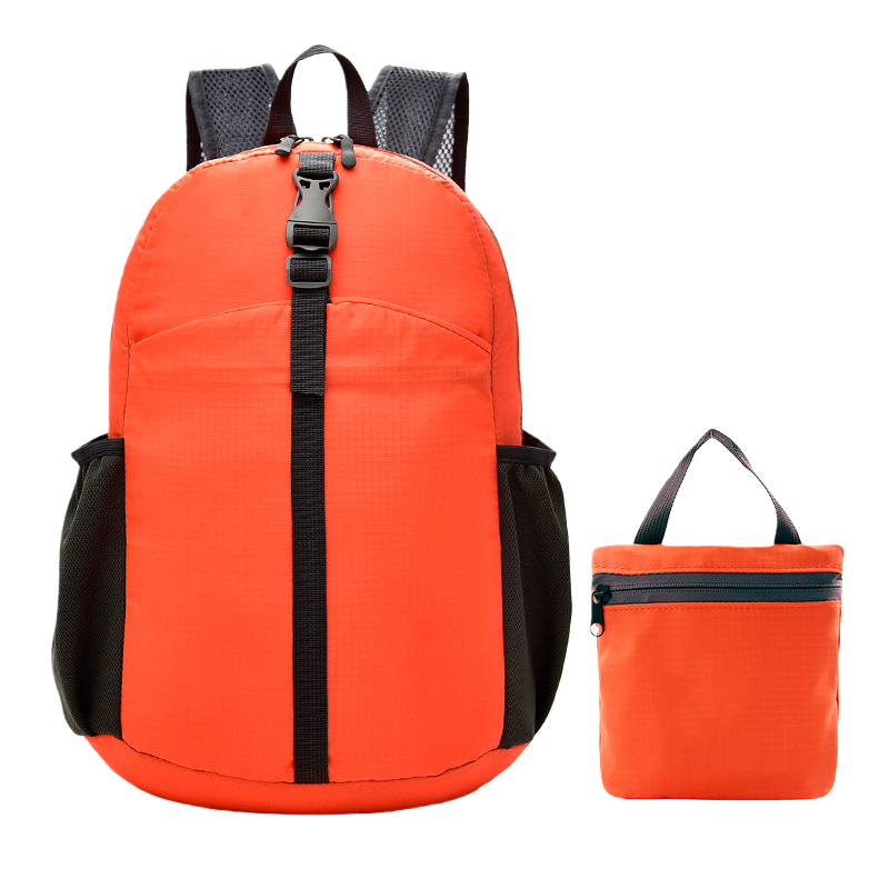 This foldable daypack packs down fast and opens up even faster. The lightweight build makes it easy to carry through busy days. The strong fabric holds up well during travel, hikes, and daily runs. The mesh straps breathe well and stay comfortable on long walks. Side pockets keep water bottles close and ready. The front buckle adds steady support when the bag gets full. When you are done, just fold it into the small pouch and toss it in your suitcase. It's a simple way to stay organized and move through your day without slowing down.