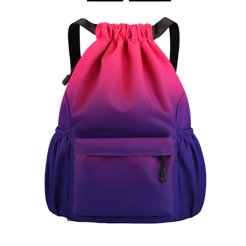 Large Gradient Drawstring Sports Backpack with Front Pocket