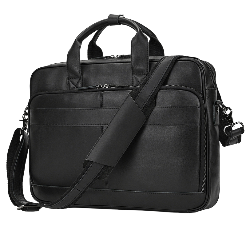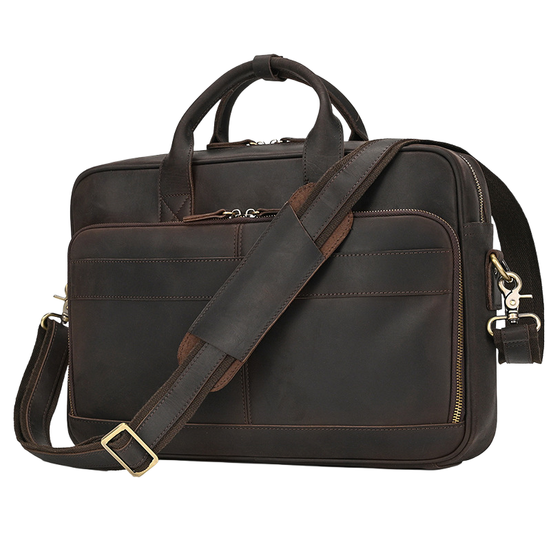 This leather laptop briefcase keeps your work gear sharp and easy to carry. Made from full grain leather, it feels tough but looks refined. Slip in your laptop, stack in your files, and still have room for chargers or a notebook. The main zip compartment opens wide so you can grab things fast. Carry it by the sturdy handles when you're headed to a meeting, or throw on the shoulder strap when you're rushing through the city. The front pocket gives quick access to your phone or keys. It's built for the grind but stylish enough for after work drinks. Perfect for daily commutes, business trips, or anyone who wants a bag that works as hard as they do.