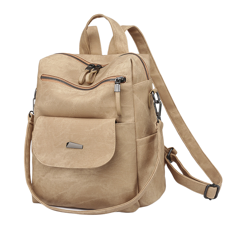 This convertible PU leather backpack purse is all about effortless style and everyday comfort. You can wear it as a backpack, sling it over your shoulder, or grab it by the top handle when you're on the move. The soft faux leather gives it a classy look without being too flashy, perfect for work, travel, or a quick coffee run. It's roomy enough for your tablet, wallet, makeup, and keys, with extra pockets to keep everything neat and easy to find. The smooth zippers glide like butter, and the adjustable straps make it comfy all day long. Whether you're heading to the office, running errands, or flying out for the weekend, this bag fits right in. It's stylish, practical, and built to match your pace-because your bag should work as hard as you do.